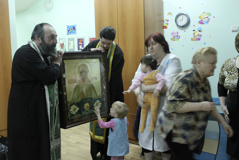 ОРСК. 15 февраля 2015 г. Икона с частицей святых мощей преподобной Матроны Московской была доставлена для поклонения в Дом малютки.