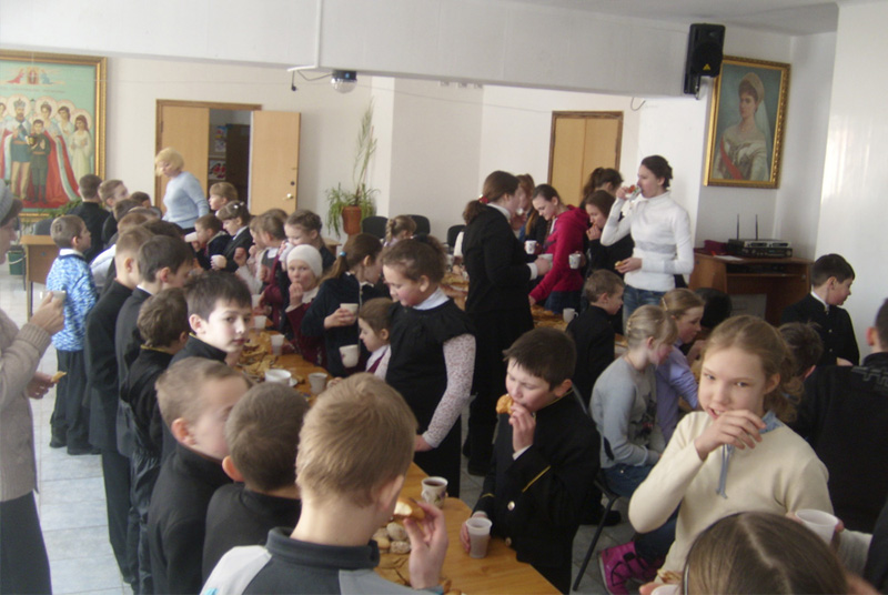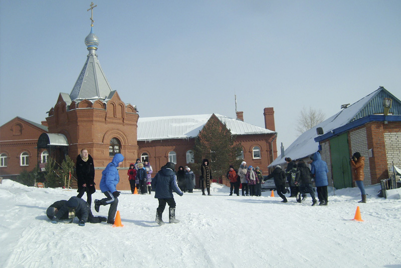 По благословлению ректора гимназии протоиерея отца Александра Куцова были организованы разнообразные состязания и игры спортивного характера: веселые старты, перетягивание каната, гонки на санках и другие. Проигравших не было, все получили большой заряд бодрости и веселого настроения. Праздник завершился дружным чаепитием у большого самовара. Традиционные блины к чаю дети и родители приготовили заранее.