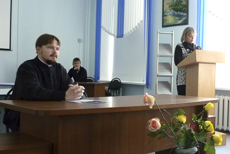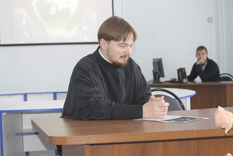 ОРСК. 20 февраля 2015 г. В здании Орского торгово-технологического техникума состоялся открытый урок на тему патриотического воспитания молодежи. В проведении мероприятия принял участие клирик Орского кафедрального собора св. вмч. Георгия Победоносца диакон Григорий Сычев.