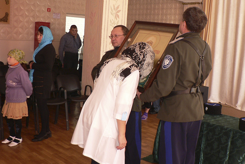 Торжественная встреча иконы состоялась в актовом зале. Икону доставили в детский дом-интернат казаки Гайского хуторского общества. Клирик кафедрального собора святого праведного Иоанна Кронштадтского г. Гая иерей Михаил Рябинов отслужил молебен перед образом чудотворной иконы. По окончании богослужения отец Михаил рассказал о силе молитвы к святой блаженной Матроне Московской и ее помощи людям.