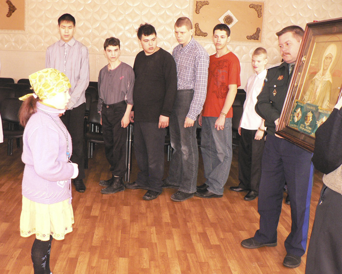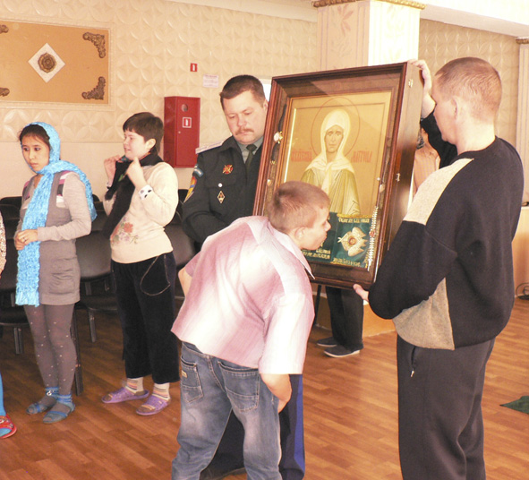 ГАЙ. 26 февраля 2015 г. В Гайский детский дом-интернат для умственно отсталых детей была доставлена икона с частицей мощей святой блаженной Матроны Московской.