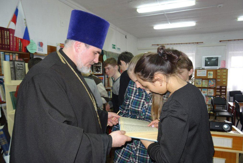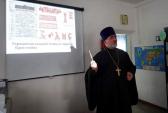АДАМОВКА. 13 марта 2015 г. Благочинный Адамовского округа иерей Вячеслав Кочкин провёл встречу с учащимися 9"Б" класса Адамовской общеобразовательной школы №1.