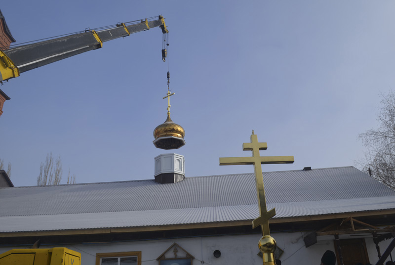 ОРСК. 2 марта 2015 г. В жизни прихожан храма Покрова Пресвятой Богородицы архиерейского подворья состоялось долгожданное и радостное событие: освящение и установка куполов с крестами.