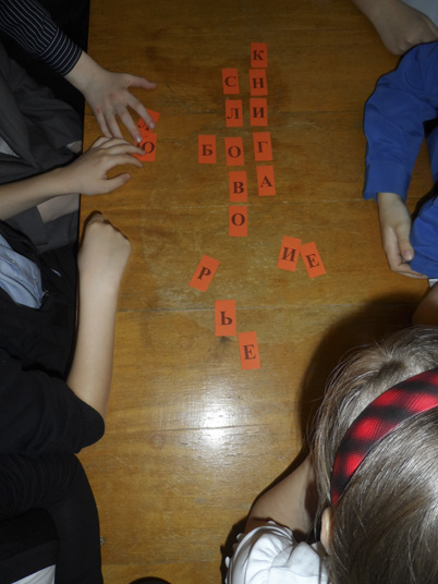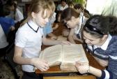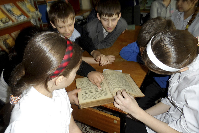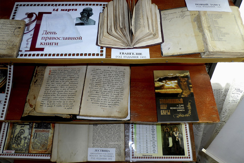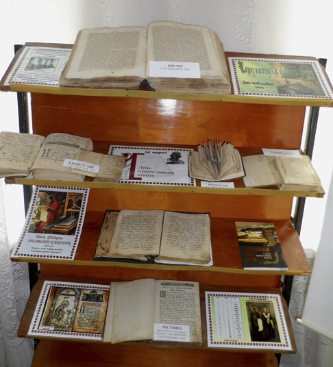 Бесценные выставочные экспонаты были собраны из книжного фонда библиотеки храма святых апостолов Петра и Павла. Вниманию ребят предстали Библия, изданная в 1863 году, Евангелие от 1893 года, Новый Завет - 1897 г., Лествица преподобного отца нашего Иоанна Лествичника – 1852 г. и др. Затем дети стали активными участниками интеллектуальной эстафеты, в которой были предложены занимательные вопросы и интересные задания: составить слова, отгадать загадки и вспомнить пословицы о книге. Школьники продемонстрировали смекалку, внимательность и сообразительность.