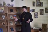 На следующий день священник Максим Бражников был приглашен как гость в библиотеку № 9 пос. ОЗТП, где принял участие в круглом столе, посвященном книгам о Великой Победе. В частности, рассматривалось содержание и современная актуальность книги В. Катаева «Сын полка». Священник рассказал о христианской сущности подвига персонажа книги капитана Енакиева, вызвавшего огонь на себя во время ожесточенного боя с немцами, спасшего таким образом своего приемного сына Ваню Солнцева и всю огневую батарею от верной гибели. На круглом столе прозвучало много слов в защиту мира, подлинного патриотизма и любви к Родине. «В любую войну русский человек должен быть готов защищать Родину, но лучше бы жить так, чтобы никакой войны не было вообще. Нам с вами надлежит создавать семьи и детей рожать, и пусть их будущее будет мирным», – отметил священник в своей итоговой реплике.