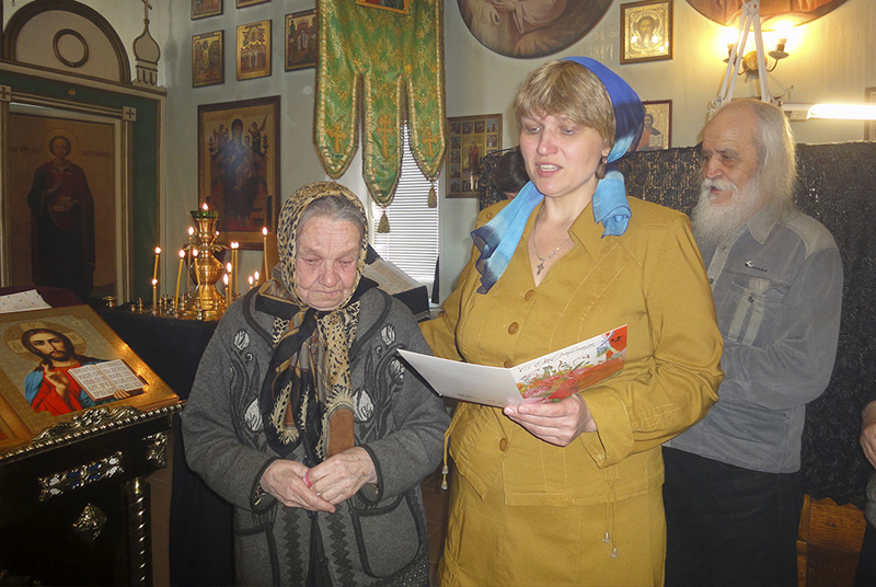 ЯСНЫЙ. 16 марта 2015 г. Сегодня настоятель игумен Онисим (Пашинов) и прихожане храма св. вмч. Пантелеимона Целителя чествуют Зою Михайловну Попову, которой исполнилось 80 лет.