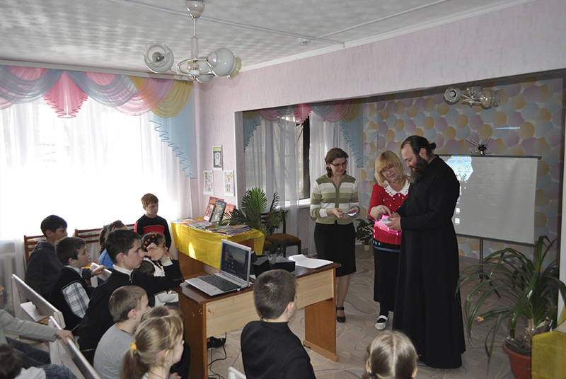 Преподаватель Закона Божьего Наталья Юрьевна Капалина рассказала детям о первых книгах Моисея, о рукописях Нестора Летописца. А настоятель храма и духовник воскресной школы протоиерей Александр Божко объяснил ребятам насколько полезно читать хорошую литературу, ведь добрая книга и нас делает добрее, а умная – умнее. «С кем поведешься, от того и наберешься. Скажи мне кто твой друг, и я скажу, кто ты», – пояснил ребятам батюшка. После выступления о. Александра каждый из детей получил в подарок детский молитвослов.