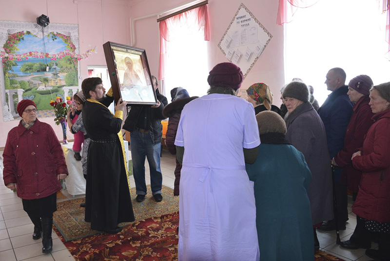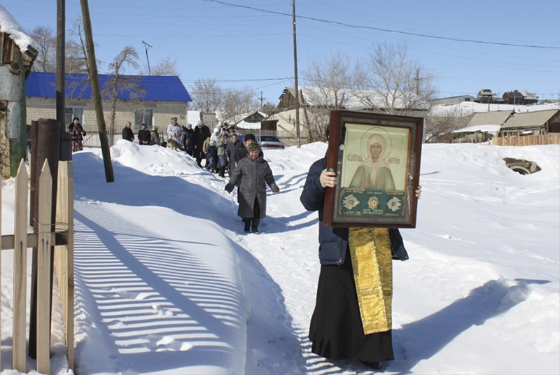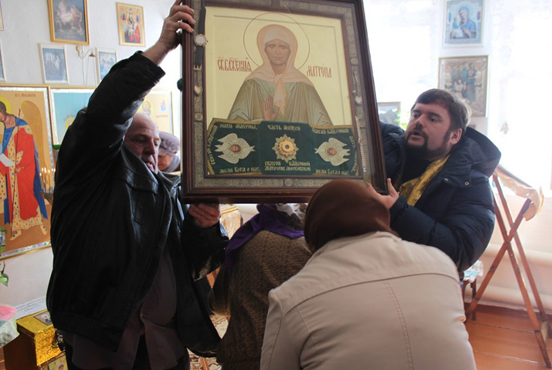 САРА-НОВОПОКРОВКА. 17 марта 2015 г. Верующие сёл Сара, Новопокровка и железнодорожной станции «Сара» Кувандыкского района имели возможность поклониться иконе с частицей мощей почитаемой святой блаженной Матроны Московской.