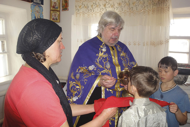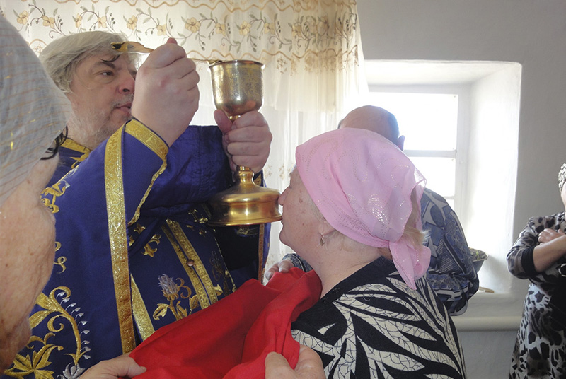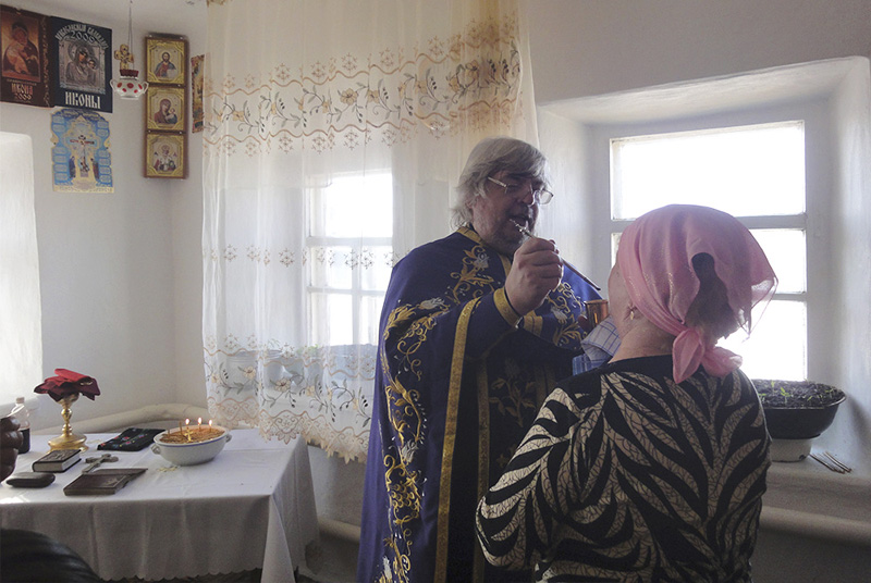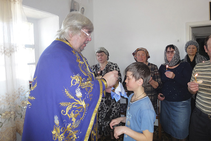 Зимой и в начале весны, когда в часовне на кладбище очень холодно, исповедь, причастие, молебны проходят в доме Галины Шаповаловой, где уже много лет собираются православные люди Еленовки. Галина приезжает на все службы в Ясном, по воскресеньям возит своих детей в воскресную школу вместе с жителями поселка. Её дом стал местом молитвенного общения прихожан с духовным наставником, игуменом Онисимом. Вот и в этот раз исповедь, причастие, соборование проходили в доме Галины Шаповаловой, где собралось 10 человек. Батюшка, как всегда, отвечал на вопросы еленовцев, рассказывал о значении Таинств в жизни православных.
