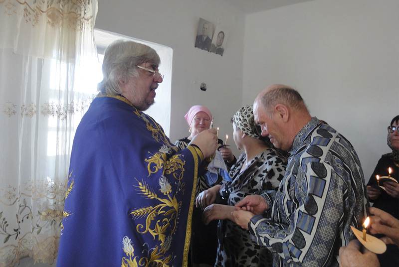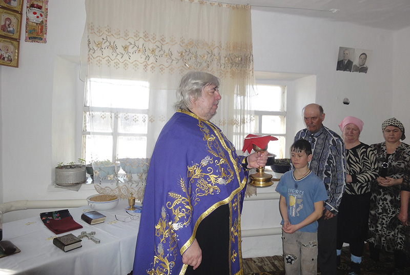 На протяжении трех дней отец Онисим совершал Таинство Соборования в храме св. вмч. и целителя Пантелеимона, чтобы все прихожане смогли собороваться. Затем батюшка выехал в пос. Еленовский Ясненского района, где вдали от районного центра проживают прихожане Пантелеимоновского храма. Их число редеет: кто уезжает, кто уходит в мир иной. На днях отец Онисим совершил отпевание еще одной еленовской женщины – Людмилы Зотовны, которая активно помогала строить небольшую часовню на кладбище поселка, привозила православных жителей в Ясный на службу.
