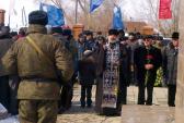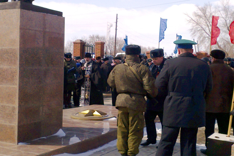 У обелиска славы п.Красноярского Кваркенского района состоялась передача «Вахты памяти», посвященной 70-летию Победы в Великой Отечественной войне, пограничными войсками Челябинской области военным Оренбургской области. В ходе церемонии настоятель храма св. вмч. Георгия Победоносца иерей Кирилл Зубков совершил литию по жертвам войны, отдавая дань памяти тем, благодаря кому мы живём сегодня.
