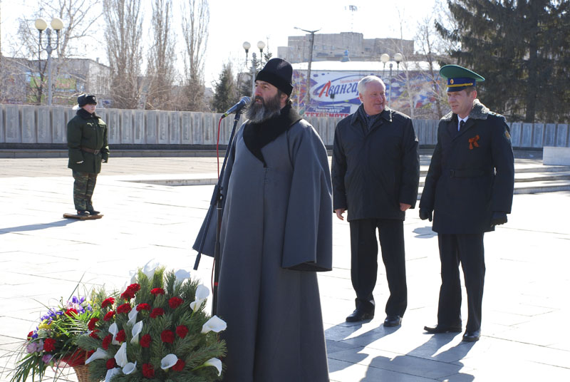 ОРСК. 29 марта 2015 г. Сегодня Орск принял Эстафету Победы. В качестве почетного гостя торжественную церемонию посетил благочинный Орского округа, настоятель храма Преображения Господня г. Орска протоиерей Александр Куцов.