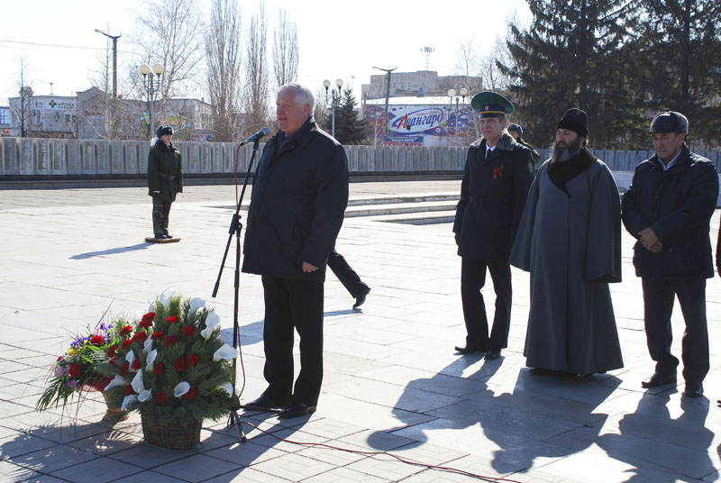 Заместитель начальника Управления федеральной службы России по Оренбургской области полковник Виталий Сошников, обращаясь к собравшимся, затронул тему возникшего в западных странах стремления пересмотреть роль советского народа в мировой истории, роль советского народа в победе над фашистским захватчиком, оккупантом.