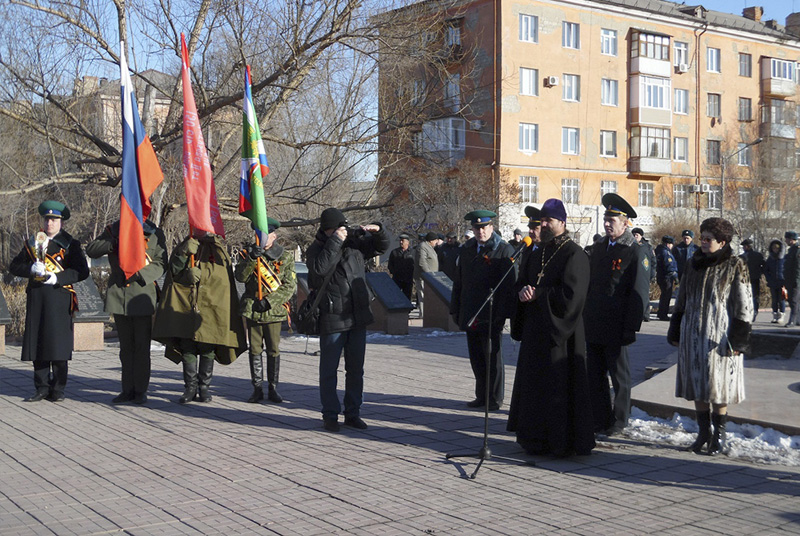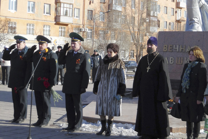 НОВОТРОИЦК. 29 марта 2015 г. В г. Новотроицке состоялась торжественная встреча пограничной Эстафеты Победы. В церемонии принял участие благочинный Новотроицкого округа, настоятель собора святых апостолов Петра и Павла г. Новотроицка, протоиерей Сергий Кваша.
