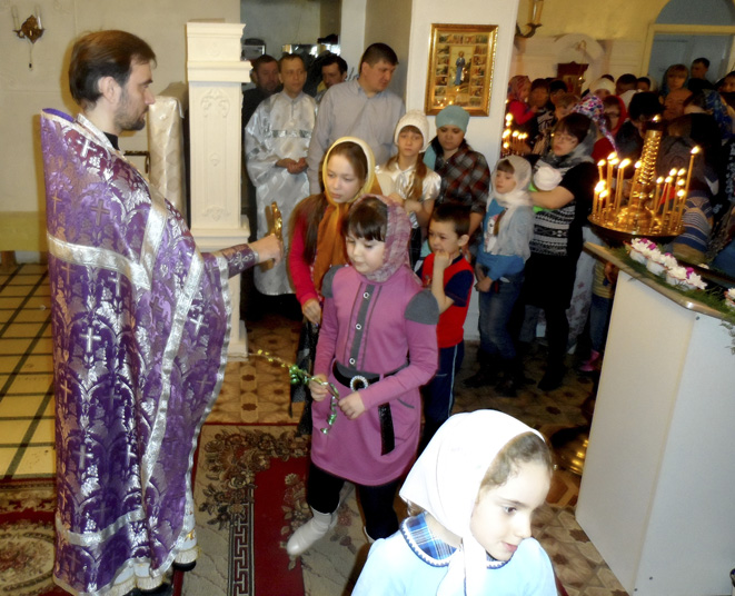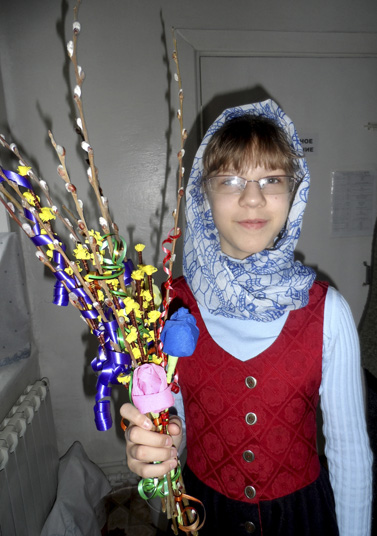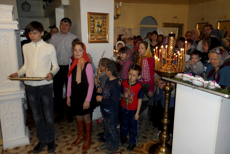 В это утро взрослые и юные прихожане с цветущей нарядной вербой молились за богослужением.