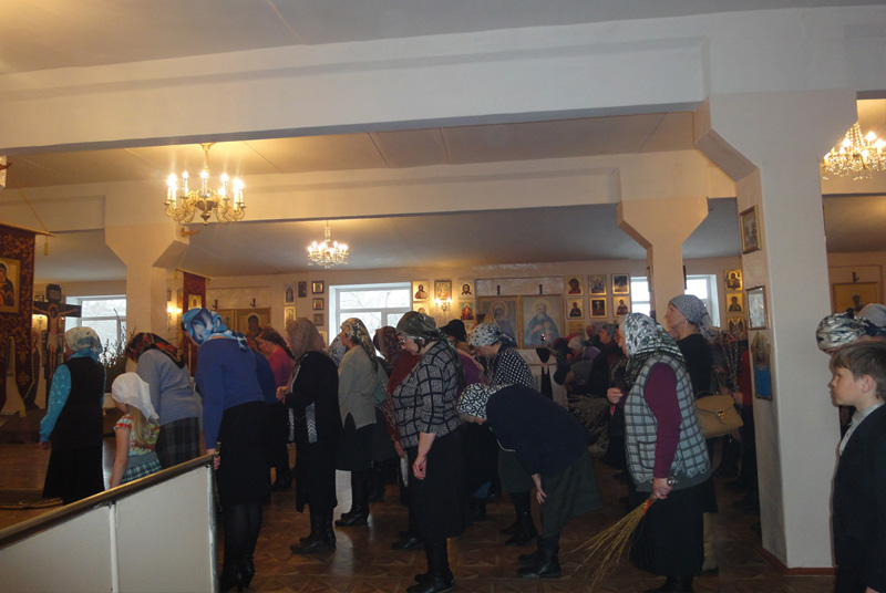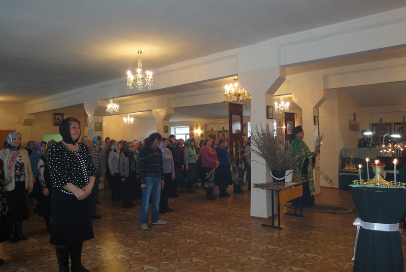Несмотря на то, что в это время дивизия проходила всеобъемлющую проверку под руководством командования ракетных войск, жены и матери военнослужащих пришли на службы и в субботу вечером, и в праздничное воскресенье. Солдаты по мере возможности приходили в свой храм освятить вербочки, постоять на службе, заказать родным и близким молебен о здравии либо на условиях благотворительности, либо внеся небольшие пожертвования. А матери и жены защитников Отечества встречали праздник Входа Господня в Иерусалим в воинском храме вместе с прихожанами.