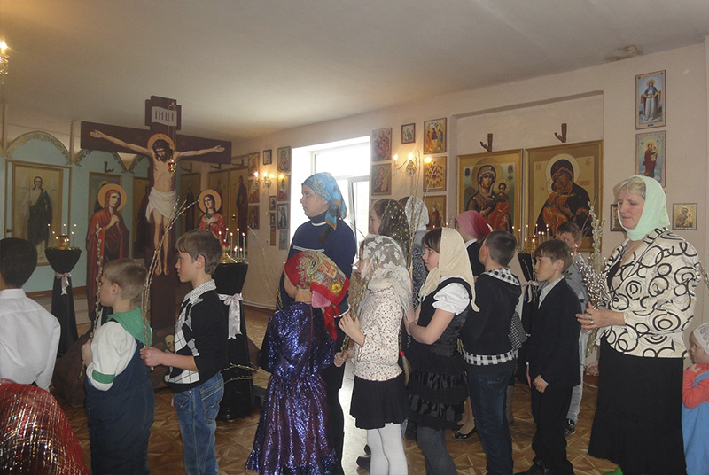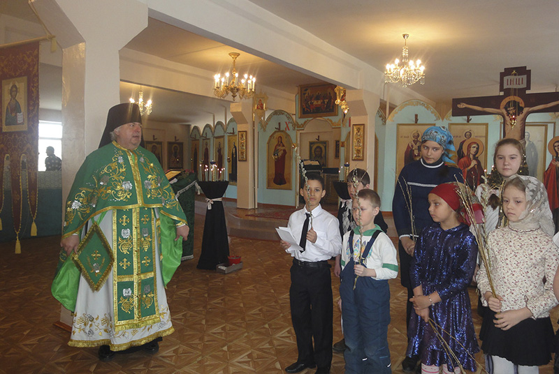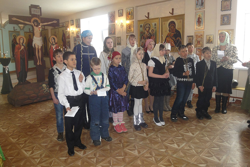В Вербное воскресенье после Божественной литургии ребята выступили с поздравлениями, подготовленными учителем Валентиной Ждановой.