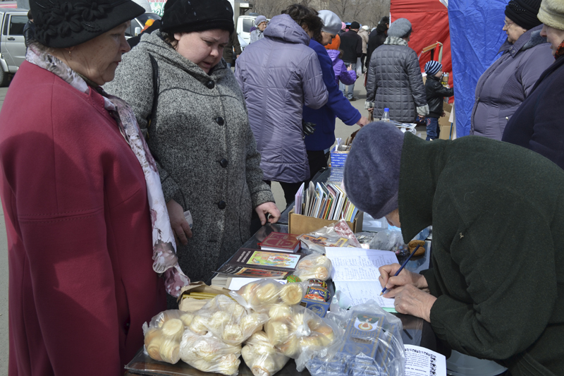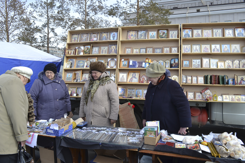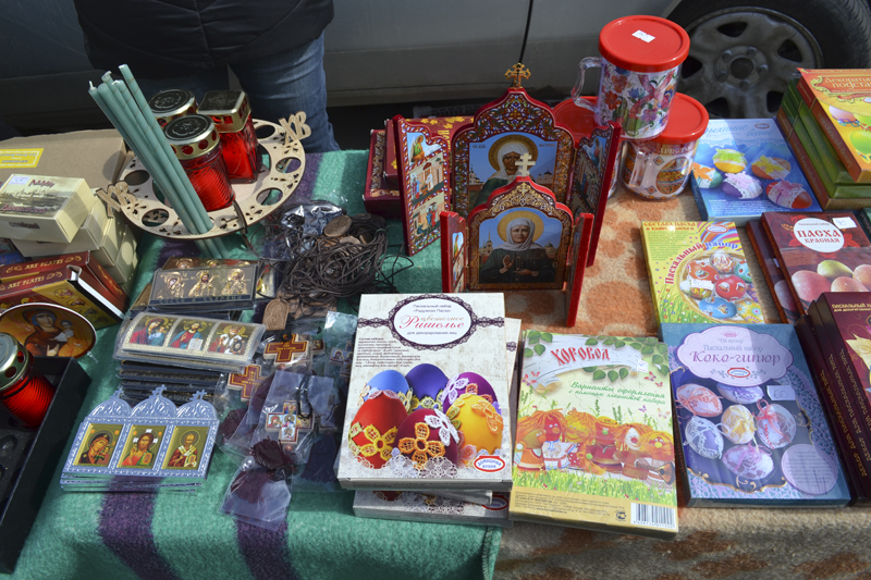 Впервые на городской ярмарке церковную продукцию представили епархиальный склад, а также Спасо-Преображенский, Покрова Пресвятой Богородицы и Казанский храмы. В предпраздничные дни люди с охотой покупали пасхальные наборы, молитвословы, книги, иконы, подавали записки о здравии и упокоении своих родных и близких.