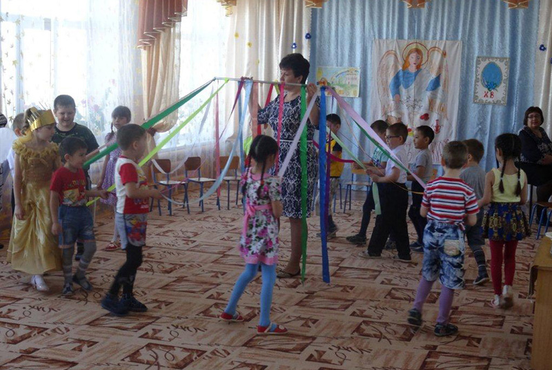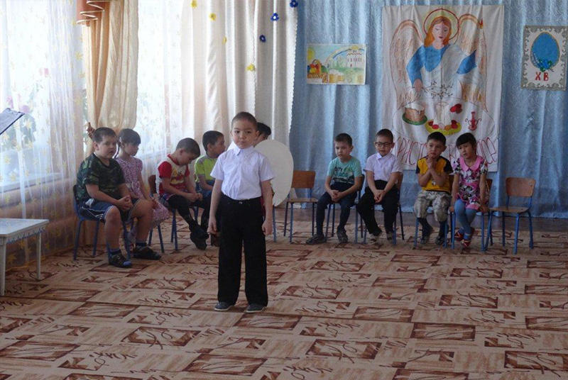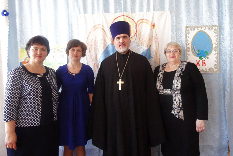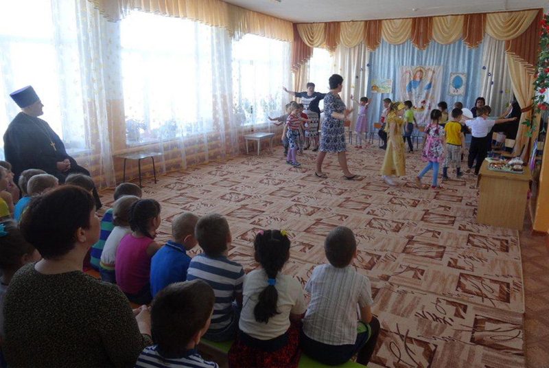 АДАМОВКА. 13 апреля 2015 г. Благочинный Адамовского округа, настоятель храма Покрова Пресвятой Богородицы п. Адамовки иерей Вячеслав Кочкин принял участие в пасхальном празднике в детском саду №4 посёлка.