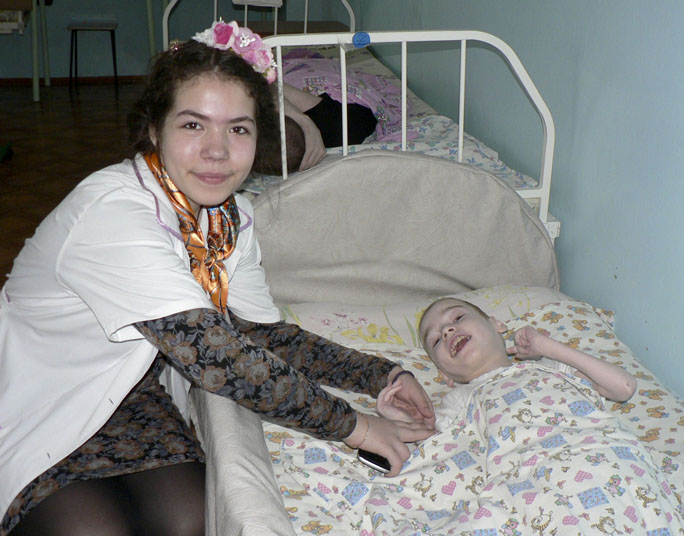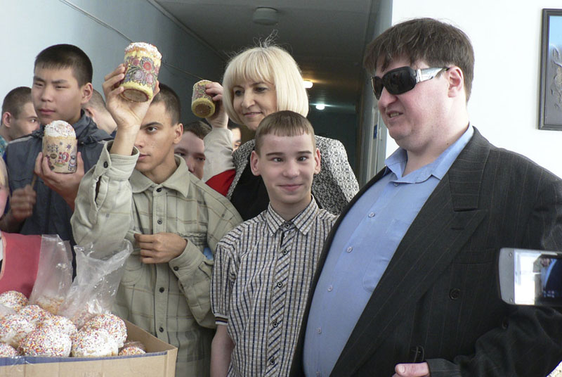 Гости посетили отделение милосердия для немобильных (лежачих) детей, отделение № 2 для девочек старшего возраста и отделение № 7 для мальчиков старшего возраста. Поздравили воспитанников с главным праздником и вручили подарки: пасхальные сувениры, наборы для рукоделия, мягкие и развивающие игрушки, погремушки, канцелярские принадлежности, пряжу для вязания, нити мулине для вышивания, книжки-раскраски, настенные коврики, футболки для мальчиков, сладости и многое-многое другое. Каждый ребенок получил традиционные пасхальные подарки – куличи. Дети, независимо от своего вероисповедания, на пасхальное приветствие гостей: «Христос воскрес!» – дружно отвечали: «Воистину воскрес!».