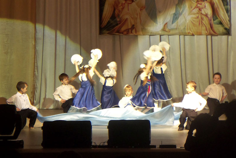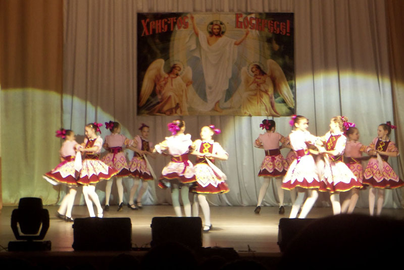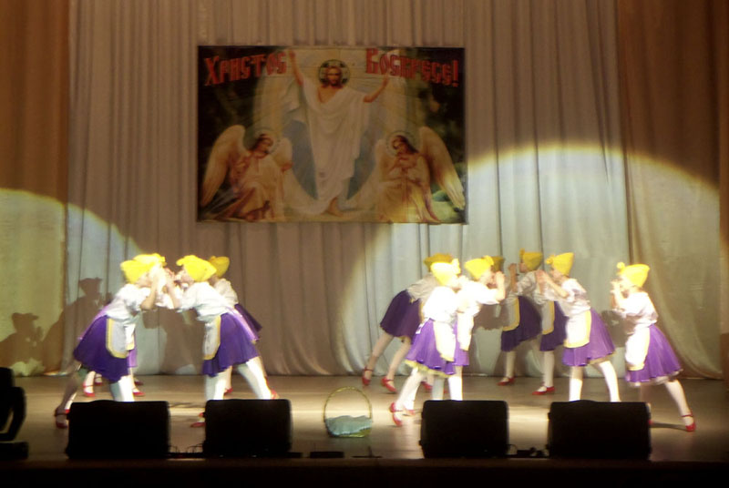 Далее в концертной программе участвовали различные творческие городские коллективы. Малыши детского сада № 4 «Ромашка» трогательно рассказали зрителям о предшествующих Пасхе праздниках: Вербном воскресении и 40 мучеников Севастийских. Творческий коллектив народников и лошкарей исполнил различные русские народные композиции.