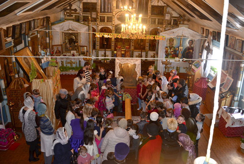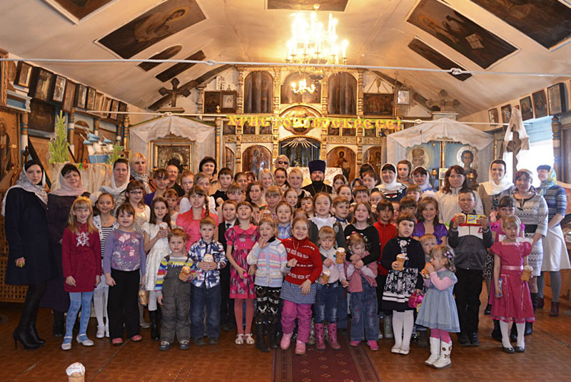 Своей радостью о Воскресшем Христе ребята делились с родителями, прихожанами храма и жителями посёлка Заречного. Праздник прошёл в тёплой семейной обстановке. Звучащие из детских уст церковные песнопения, стихотворения и песни – всё прославляло Воскресение Христово! Зрителям был показан кукольный спектакль «Пасхальный колобок». Изюминкой праздника стала полюбившаяся детям игра «Пасхальная горка», где требовалось попасть яичком в понравившуюся игрушку, чтобы получить ее в подарок.