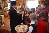 Заключительное слово было предоставлено настоятелю храма иерею Андрею Пелипенко. Отец Андрей поздравил всех собравшихся с великим праздником Воскресения Христова и вручил всем присутствующим детям в подарок по пасхальному куличу и плитке шоколада. А в классе воскресной школы всех гостей ожидало чаепитие, которым закончилось это праздничное мероприятие.