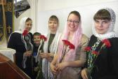 В Неделю жён-мироносиц в храме Покрова Пресвятой Богородицы прошла Божественная литургия. По окончании богослужения настоятель храма иеромонах Феодор (Липкин) поздравил с православным женским днём прихожанок, после чего во время целования креста в подарок сестры получили алые гвоздики. «Мироносицы» – так ласково иной раз обращались к женщинам, девушкам и девочкам в церкви – услышали немало поздравлений и от прихожан-мужчин.