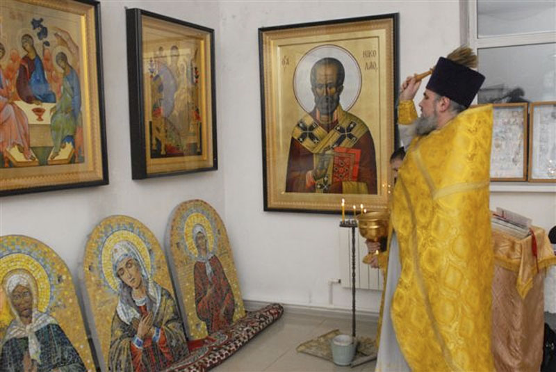 АДАМОВКА. 5 февраля 2012 г. В храме Покрова Пресвятой Богородицы освящены новые мозаичные иконы: Божией Матери «Умиление», св. блаженной Матроны Московской и св. блаженной Ксении Петербургской.