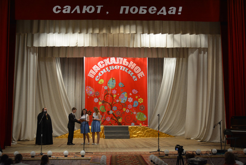 Во второй половине дня состоялся праздничный концерт в ДК «Строитель». Светлана Бубнова и Ирина Креслянская исполнили песню «Христос Воскрес», за что получили из рук ректора Православной гимназии во имя св. праведного Иоанна Кронштадского протоиерея Георгия Горлова грамоту и книгу.