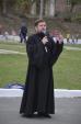 В своем обращении к собравшимся отец Андрей поведал краткое житие великомученика Георгия. Проводя параллель между подвигами святого воина, сила которого была не в копье и не в мече, а в Слове Божьем, и воинами, которые самозабвенно и отважно отдавали свои жизни, защищая нашу Родину от врага, отец Андрей отметил, что ровно 70 лет назад именно в этот день, 6 мая 1945 года, закончились бои Великой Отечественной войны. Русские солдаты освободили Берлин, и окончилась самая страшная, самая жестокая и кровопролитная война. В тот великий год на этот день приходилась и Пасха - победа жизни над смертью и в духовном, и в земном смысле, победа над злобой и ненавистью. Во многом это свершилось и трудами и молитвами великомученика Георгия Победоносца, который не оставлял наших предков своей помощью и не оставляет россиян и поныне.