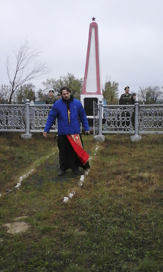 МЕДНОГОРСК. 8 мая 2015 г. Накануне Дня Победы настоятель храма святителя Николая Чудотворца (микрорайон Южный) иерей Максим Малюта принял участие в городском автопробеге, посвященном Победе в Великой Отечественной Войне «От обелиска к обелиску».