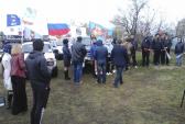 Несмотря на холодную и пасмурную погоду, в автопробеге участвовало достаточно большое количество машин и автолюбителей, которые украсили свои транспортные средства флагами Российской Федерации и Георгиевскими лентами.