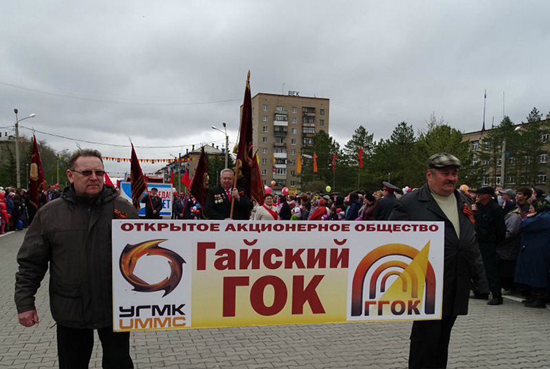 Сегодня в честь 70-й годовщины Победы в Великой Отечественной войне в городе Гае на площади Ленина состоялся праздничный парад. В торжественном мероприятии участвовали: и.о. главы города Гая Александр Сараскин, директор ОАО «Гайский горно-обогатительный комбинат» Геннадий Ставский, военный комиссар Алексей Нестеренко, благочинный Гайского округа протоиерей Игорь Никифоров, директор СПК «Птицефабрика Гайская» Евгений Малюшин, председатель городского Совета депутатов Александр Батин, представители совета ветеранов. Память погибших на полях сражений почтили минутой молчания и троекратным оружейным залпом. В праздничных колоннах шли ветераны Великой Отечественной войны, участники и ветераны локальных войн, казаки Гайского хуторского общества, первостроители города Гая, школьники, студенты, спортсмены, трудовые коллективы, представители общественных организаций. В небо были выпущены сотни воздушных шаров цвета георгиевской ленты. Сразу после окончания праздничного шествия в честь Дня Победы на центральной площади Гая состоялась всероссийская акция, в рамках которой все жители хором исполнили песню «День Победы». Вечером небо города озарил праздничный салют.