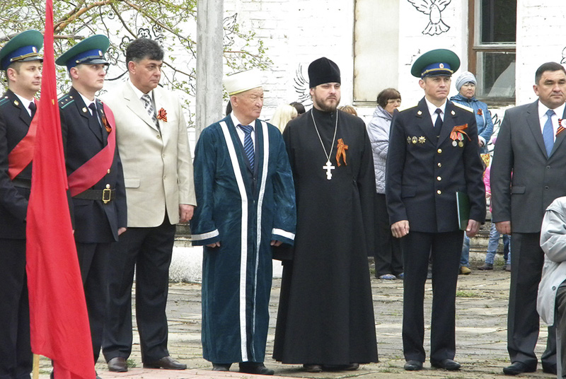 СВЕТЛЫЙ. 9 мая 2015 г. Настоятель храма Покрова Пресвятой Богородицы иеромонах Феодор (Липкин) принял участие в митинге по случаю 70-летия Победы в Великой Отечественной войне.