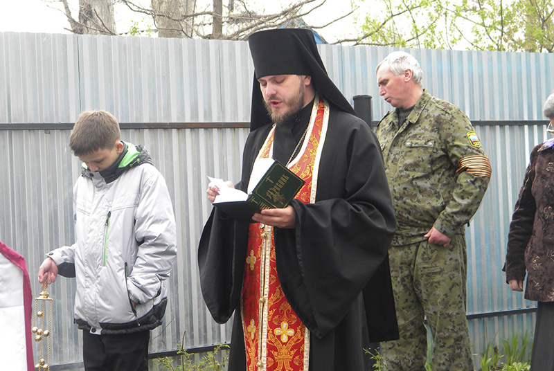 В полдень ударили в колокол, и в течение пятнадцати минут по округе разлетался его звон в память о жертвах лихолетья 1941-1945 годов. Затем во дворе храма настоятель иеромонах Феодор (Липкин) отслужил панихиду «о вождех и воинах, жизни свои на поле брани за Отечество наше положивших». На поминальном богослужении молились работники и прихожане храма, а также члены хуторского казачьего общества «Рудный клад». Перед началом панихиды батюшка обратился к собравшимся с проповедью о долге православных христиан чтить память и молиться о прощении грехов тех, благодаря кому мы, нынешние современники, имеем возможность жить.