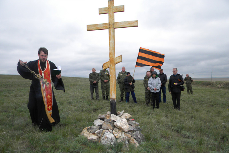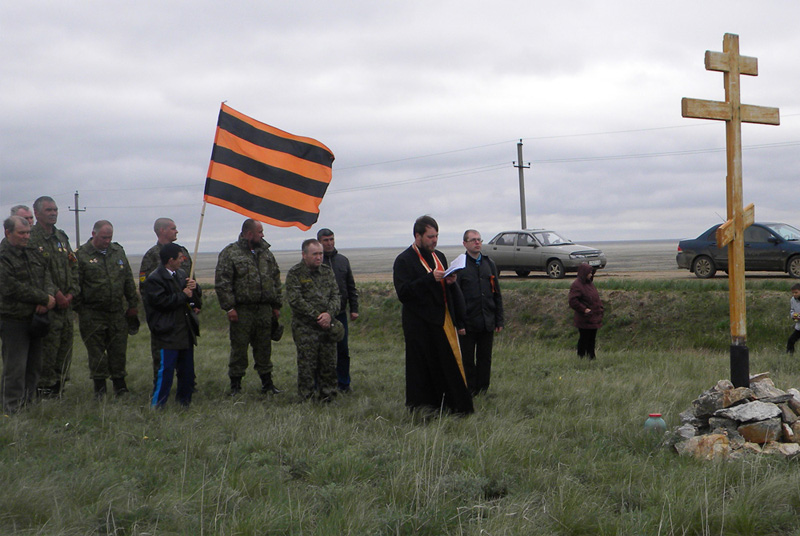 Деревянное знамение Победы над врагом рода человеческого изготовлен на средства представителей хуторского казачьего общества «Рудный клад». Чин освящения нового креста совершил настоятель храма Покрова Пресвятой Богородицы п. Светлого иеромонах Феодор (Липкин). На молебне присутствовали наиболее активные казаки, включая атамана общества «Рудный клад».