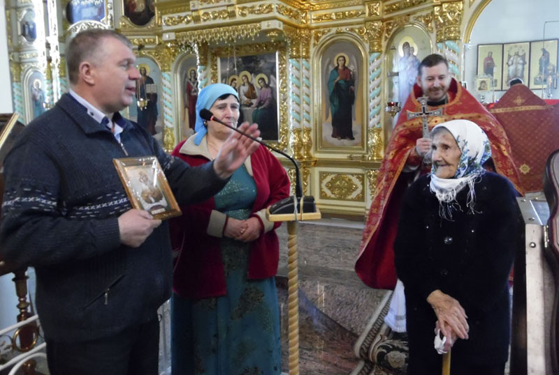 В этот день именинница смогла исповедоваться и причаститься Святых Христовых Таин. В торжественной обстановке от лица всех присутствующих члены приходского совета вручили Марии икону Пресвятой Богородицы и пожелали юбиляру здоровья, внимания близких, многая и благая лета.