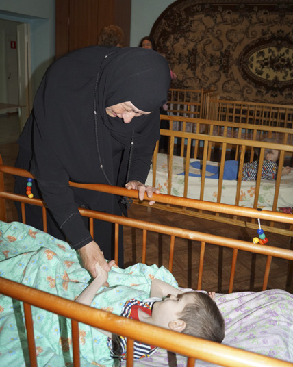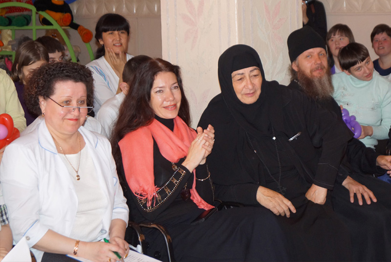 В этот день гости из храма вместе с матушкой Серафимой посетили также отделение милосердия для немобильных (лежачих) детей, поздравили ребятишек с Днем детства, поиграли с ними и вручили подарки.