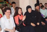 Воспитанники собрались в прекрасно украшенном актовом зале, в котором царила праздничная атмосфера. Порадовала детей своим визитом и матушка Серафима, игумения монастыря св. Варвары города Тбилиси. Она обратились с поздравительным словом ко всем присутствующим в зале: