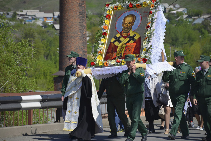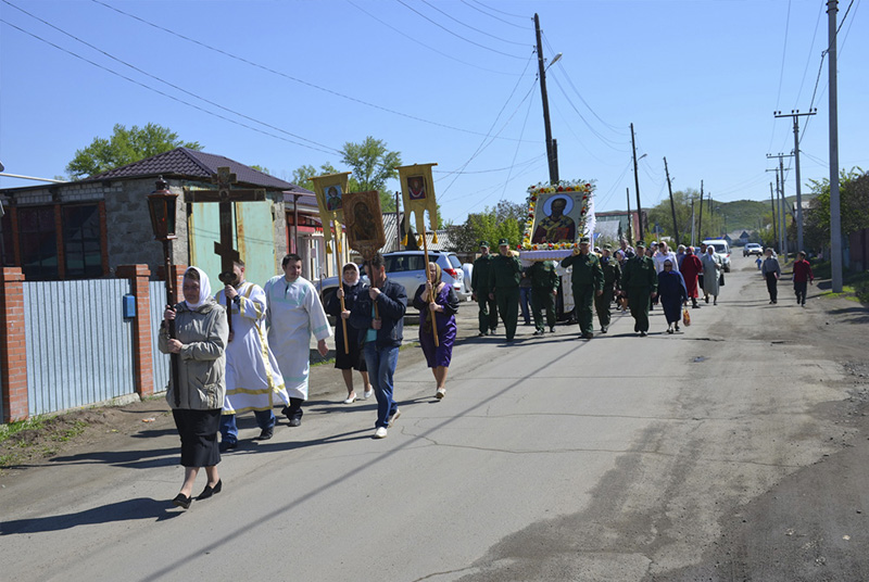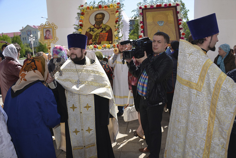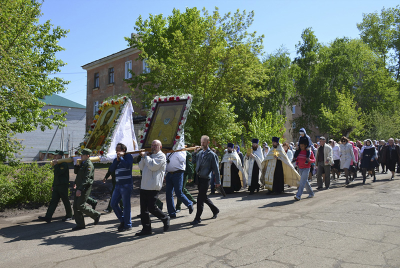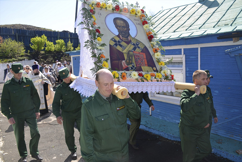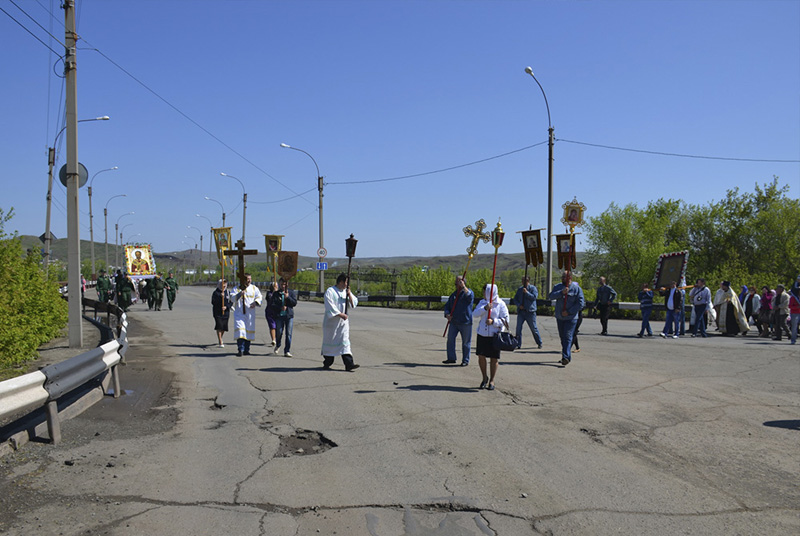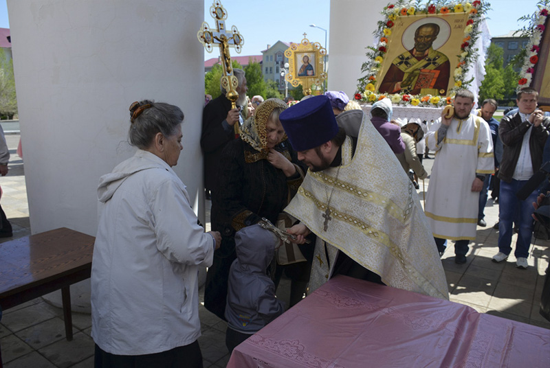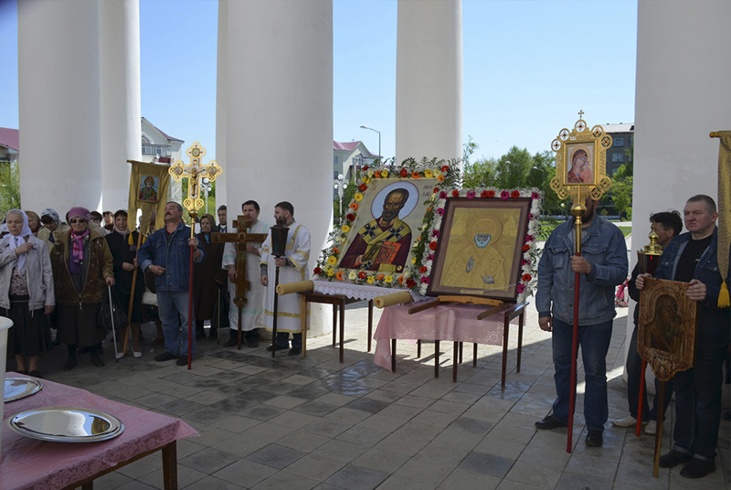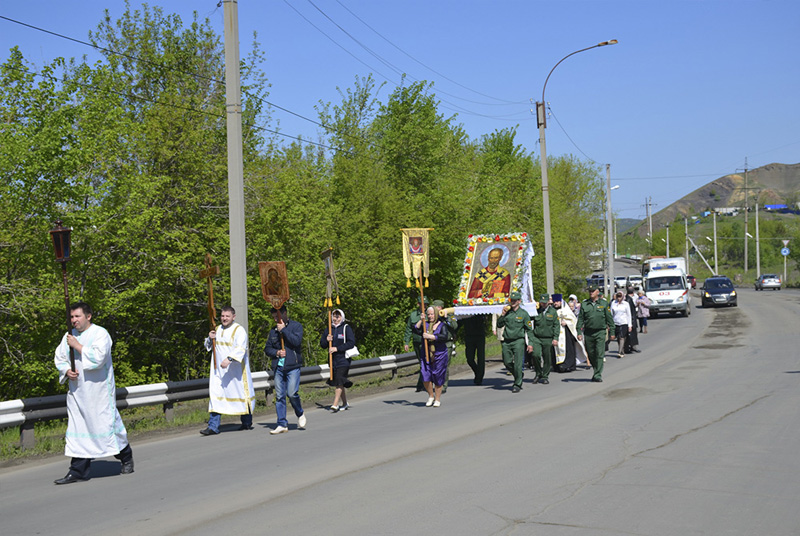По окончании Божественной литургии, которую отслужил настоятель храма иерей Андрей Пелипенко, прихожане храма вышли на крестный ход с одной из святынь храма – иконой святителя Николая Чудотворца. Праздничное шествие проследовало по улицам посёлка Заречного и города Медногорска. На улице Горького произошла радостная встреча со вторым крестным ходом, который вышел из храма святителя Николая Чудотворца микрорайона Южного. Шествие духовенства и верующих остановилось на центральной площади города, у городского Дома культуры «Металлург», где был отслужен молебен с водоосвящением святителю Николаю Чудотворцу. По окончании молебна настоятели храмов поздравили всех присутствующих с днем чествования святителя Николая, поделились пасхальной радостью престольного дня и пожелали всем непрестанного заступничества угодника Божьего.