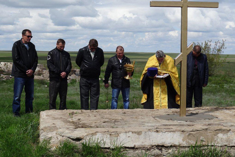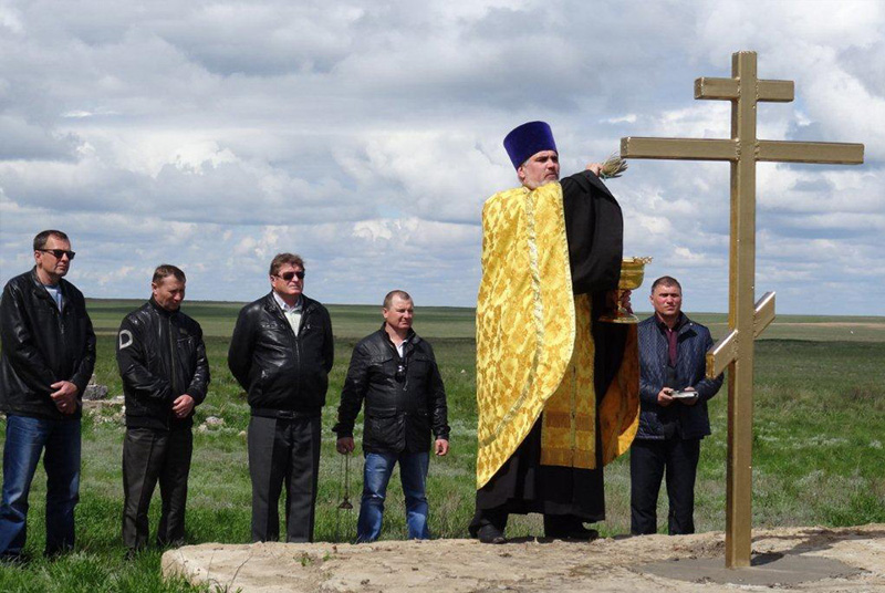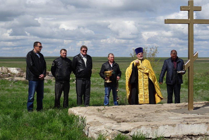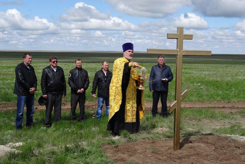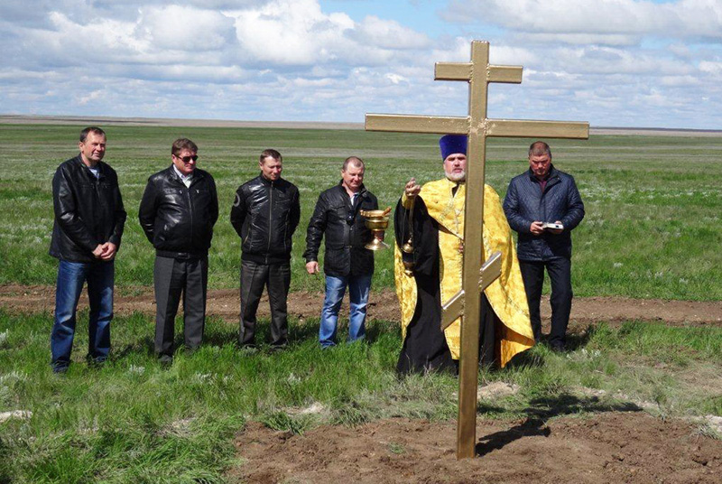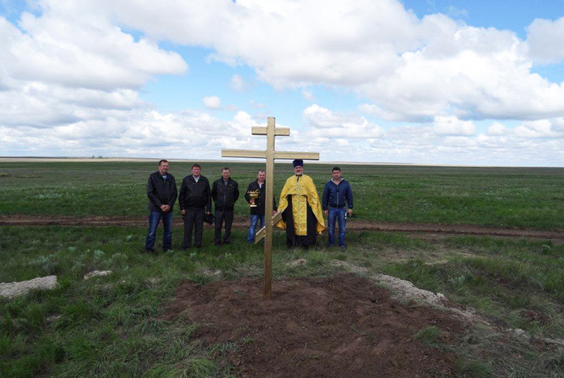 АНИХОВСКИЙ. 21 мая 2015 г. В день празднования Вознесения Господня благочинный Адамовского округа иерей Вячеслав Кочкин освятил два поклонных креста на территории колхоза «Аниховский».