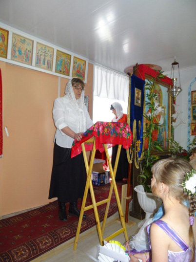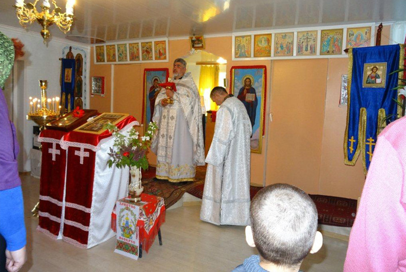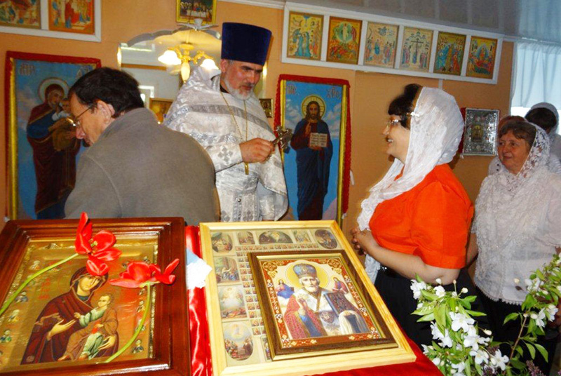 ТЕРЕНСАЙ. 22 мая 2015 г. В день памяти перенесения мощей святителя и чудотворца Николая из Мир Ликкийских прихожане молитвенного дома иконы Божией Матери «Иверская» отметили 15-летие первой совместной молитвы в своём посёлке. Тогда инициативная группа по созданию прихода в посёлке прочитала акафист святителю Николаю.