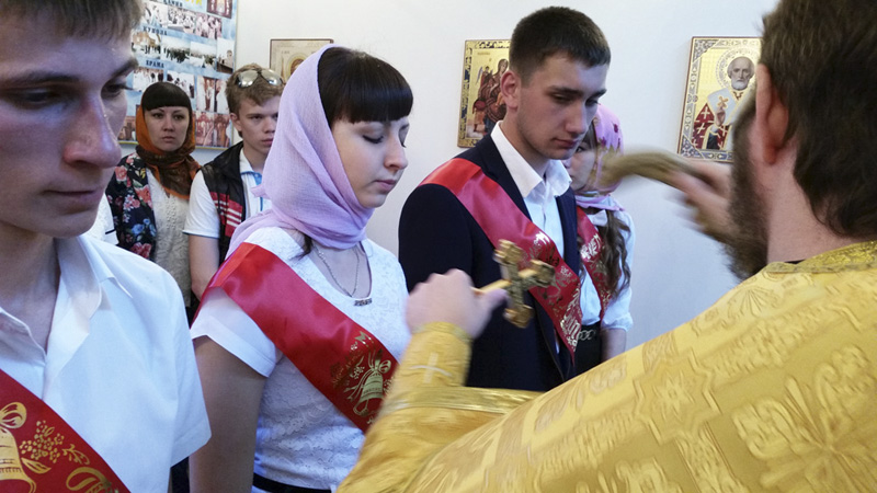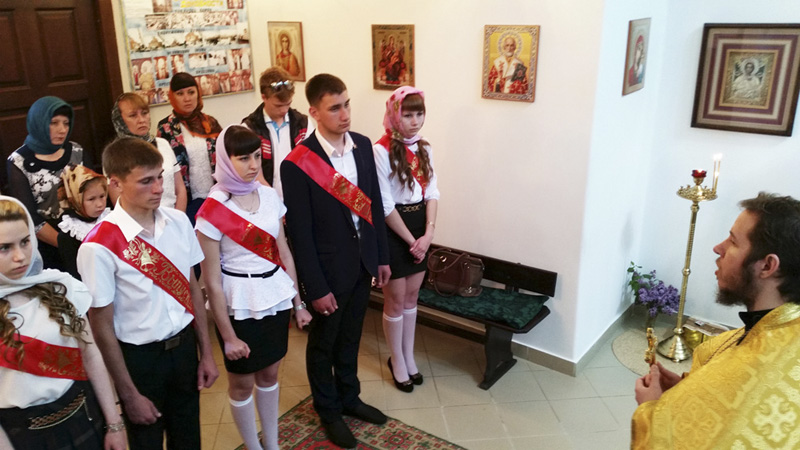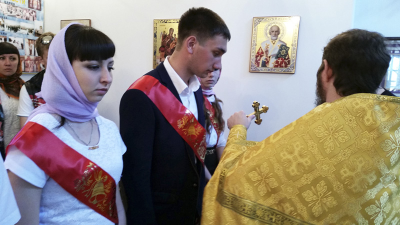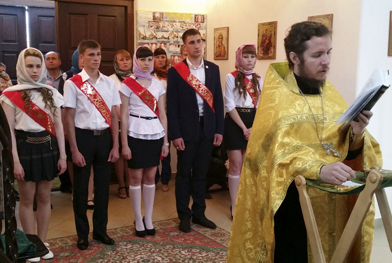 ХАБАРНОЕ. 23 мая 2015 г. В рамках дня святых равноапостольных Кирилла и Мефодия, учителей словенских, настоятель храма св.апостола Андрея Первозванного иерей Евгений Селивёрстов совершил напутственный молебен о всех учащих и учащихся, готовящихся к проведению и сдаче государственных экзаменов 2015 года.