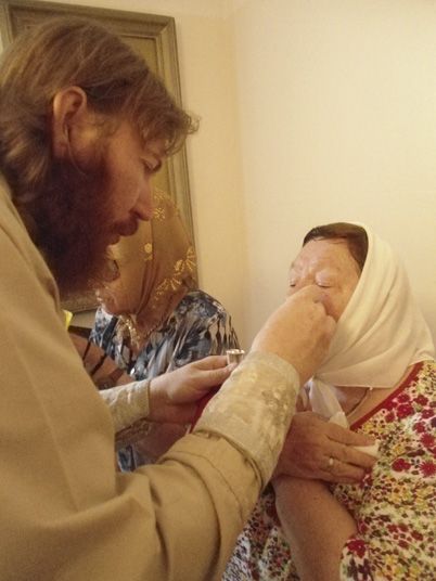 ОРСК. 26 мая 2015 г. В период попразднства праздника Вознесения Господня в ДИПИ «Надежда» г.Орска, п.Новая-Биофабрика, прошли Таинства Исповеди и Причастия для лежачих.