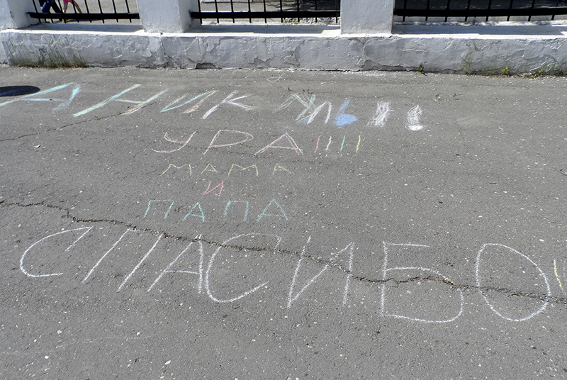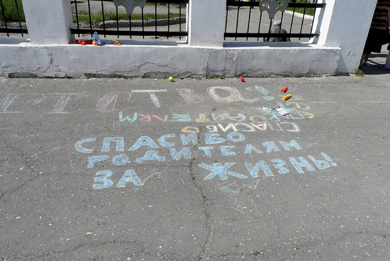 На церковном дворе ребята провели Благодарственную акцию «Спасибо за жизнь»: оформили «стрит арт» - на асфальте мелом написали слоганы в поддержку акции. Мальчики и девочки не упустили возможность поблагодарить своих родителей за когда-то подаренную жизнь. Это можно было сделать, заполнив оригинальную открытку со словами: «Мама и папа, спасибо за жизнь!».