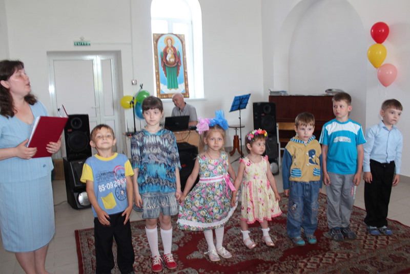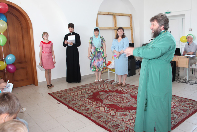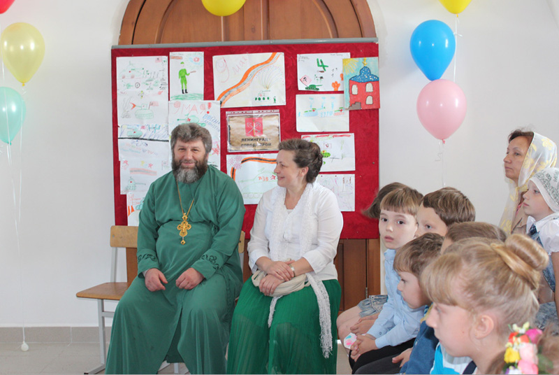 ОРСК. 31 мая 2015 г. В день Святой Троицы в концертном зале воскресной школы храма Покрова Пресвятой Богородицы г. Орска (бывшего монастыря) вновь многолюдно. Педагоги и ученики пригласили настоятеля храма протоиерея Анатолия Сопигу, матушку Неониллу, диакона Иоанна Алексеева и прихожан на творческую встречу, которая приурочена к окончанию учебного года.