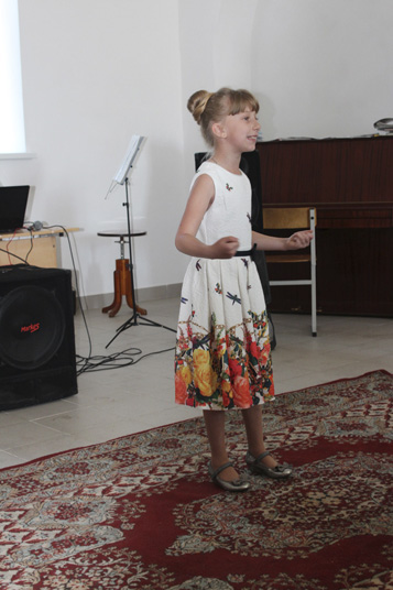 Самые маленькие наши ученики прочли стихи о школе, в которых звучали наставления выпускникам, а бывшая наша выпускница (ныне стажер) Татьяна Коледенкова под оглушительные аплодисменты зрителей исполнила песню «Крылатые качели». Ученицы дошкольного класса Лизонька Чижикова рассказала стихотворение «Учителя», далее сестрички Даша и Аня Шаповаловы прочли большое и сложное стихотворение «Спасибо учителям», чем очень порадовали своих наставников. Трогательные стихи, посвященные воскресной школе, занимательным урокам, наставлениям выпускникам и даже предстоящим каникулам, читали Илья Кукунин, Даша Сопига, Саша Подкосова и все ученики дошкольной группы.