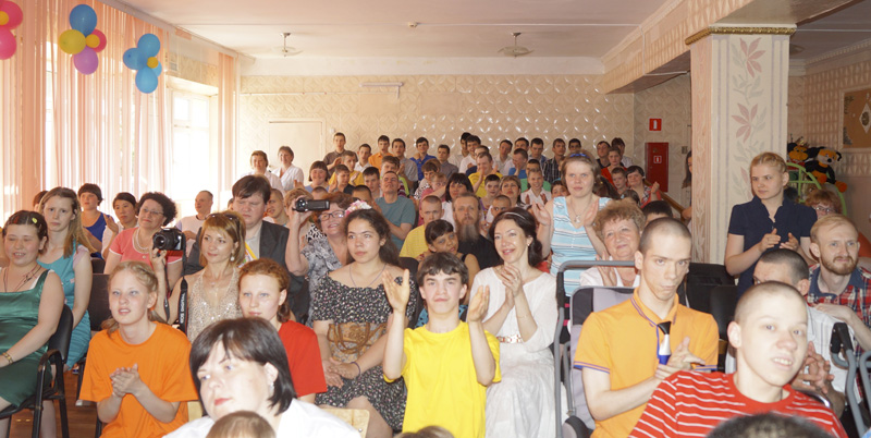 С приветственным словом к детям, сотрудникам и гостям интерната обратилась директор детского дома Н.В. Бехтерева. Она поздравила всех с праздником, пожелала детям улыбок на лицах, ведь от улыбок детей тают даже самые жесткие сердца людей. Также Нина Васильевна поблагодарила всех гостей и спонсоров за чуткость и заботу о детях-инвалидах, за то, что наши воспитанники, благодаря поддержке взрослых, ощущают себя нужными обществу.