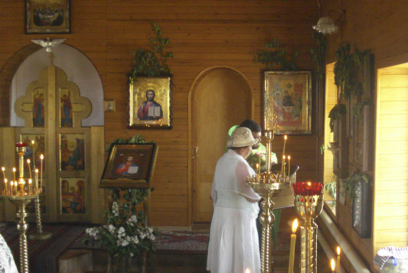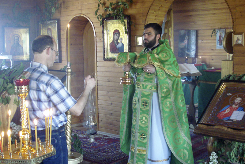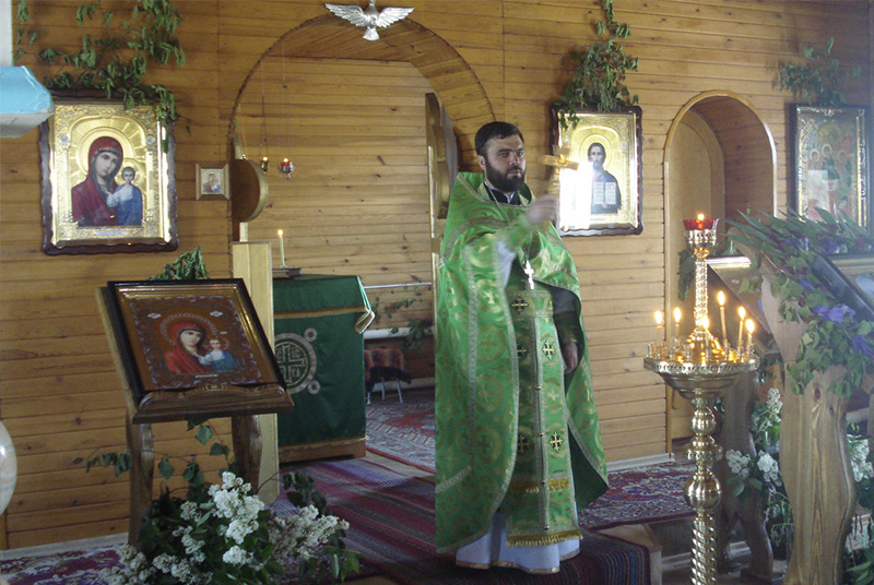 В канун праздника клирик храма иерей Иоанн Келбуцэ совершил всенощное бдение, а в день празднования возглавил Божественную литургию и крестный ход вокруг храма. Сослужили отцу Иоанну пономари храма Владимир Ерисов и Георгий Косатенков. За богослужениями пела певчая храма Елена Богатырева и чтец Ольга Санникова. В проповеди, говоря о действии Святого Духа на человеческую природу, священник обратился к многочисленным верующим со словами приветствия и назидания. Святой Дух называют «Подателем жизни», дарующим людям Божию благодать, природа набирает силу – всё вокруг покрывается насыщенным зелёным ковром. Зелёный – цвет спокойствия и гармонии, символизирует в Православии обновляющую и животворящую силу Святого Духа. В знак этого на Троицу храмы украшаются веточками деревьев, цветами и травой, зеленью. Вторя краскам природы, наш храм нарядился зеленью листвы. Главным украшением храма служили ветви деревьев, ставшие своеобразным символом Троицы на Руси. И облачения священнослужителей, и лёгкие платочки певчих и прихожан имели ярко-зелёный цвет. Отец Иоанн пояснил прихожанам смысл слов преподобного Серафима Саровского, который говорил, что стяжание Духа Святого - это цель христианской жизни. Святой Дух, по учению Святой Церкви, даёт нам свои плоды. А плоды Святого Духа - это любовь, мир, радость, долготерпение, благость, милосердие, вера, кротость, воздержание, смирение и другие христианские добродетели. И если мы этими добродетелями обладаем, то благодать Святого Духа действует в нас. По окончании службы, торжественно прошествовав крестным ходом вокруг храма, все участники богослужения – духовенство и прихожане – прикладывались к кресту и приняли дар – просфору.